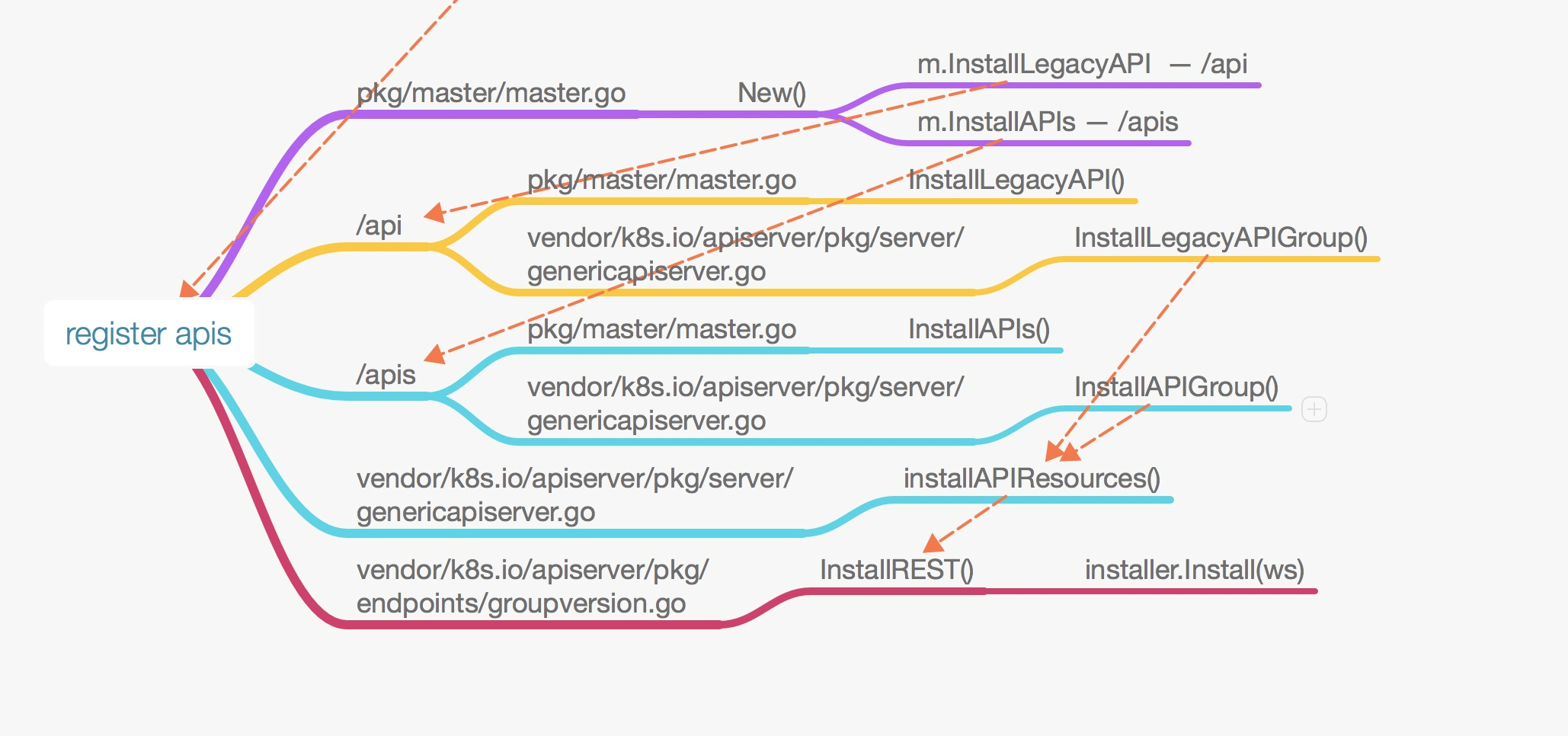 前面介绍到/api和/apis分别注册加入到Container, 而最终, 二者调用installer.Install(ws). 这一步, 我们需要进一步了解细节.